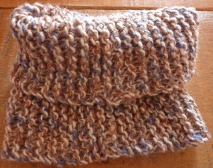 If you don’t have the patience to make a scarf what about a neck warmer or a cowl? This is a neck warmer Dina made: