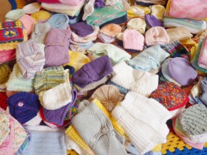 I’m so very proud of how many items we’ve managed to collect and want to extend a huge message of thanks to all of you that gave your time, your creativity and your yarn to make the delicate, little creations. It’s great to see how much the collection has inspired so many of you and I know there have been a good few ‘retired’ knitters that have been persuaded to pick up their needles once again and knit for this charity.
