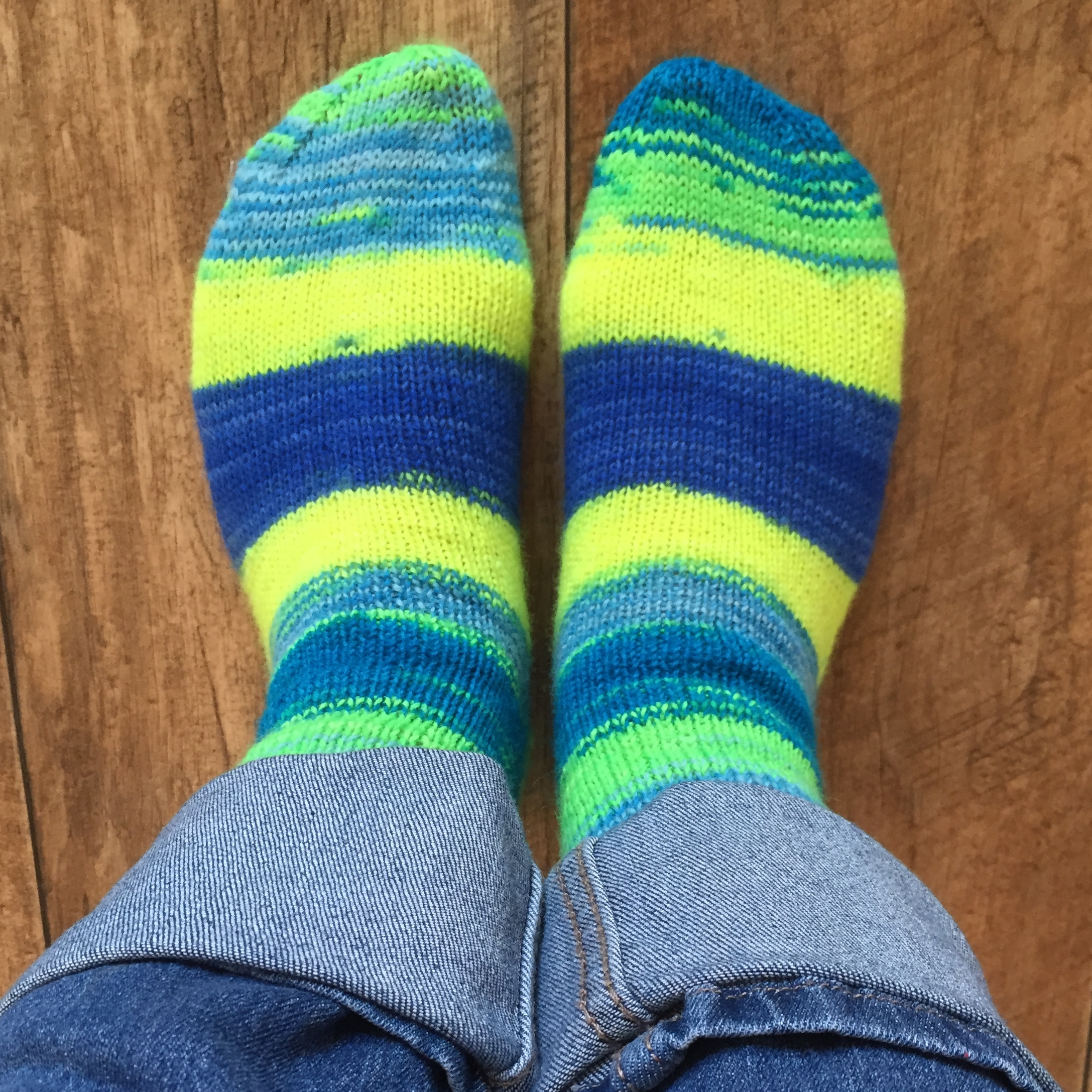 I’ve finally managed to adjust the foot length on my neon, London Comicon socks