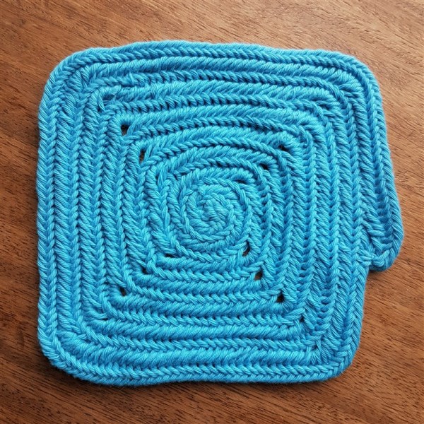 Perhaps I should aim a little lower to begin with and make a pot holder like this one that Katherine very kindly made me a while ago now. It’s used and loved, hence the couple of stains.