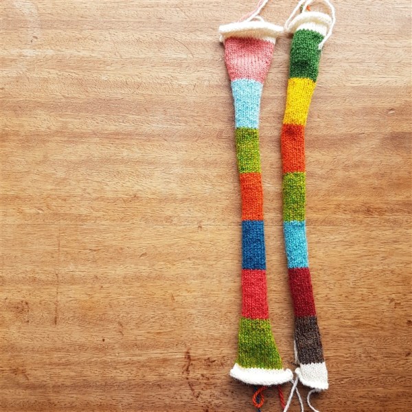 I changed things up in the last two weeks of the Diary. You’ll notice there is a little cream rectangle at either end? Ten rows to be precise, which I’m going to use to attach the piece to the backing when it’s complete. I was originally going to knit strips and join those to the four edges of the finished piece, but I think this might be easier in the long run. I’ll still have to do the cream strips for either end of the finished Diary, but they’ll take next to no time to knit and join.