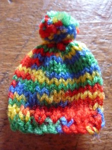 The hats can be made in knit or crochet and absolutely any colours are acceptable – have some fun.