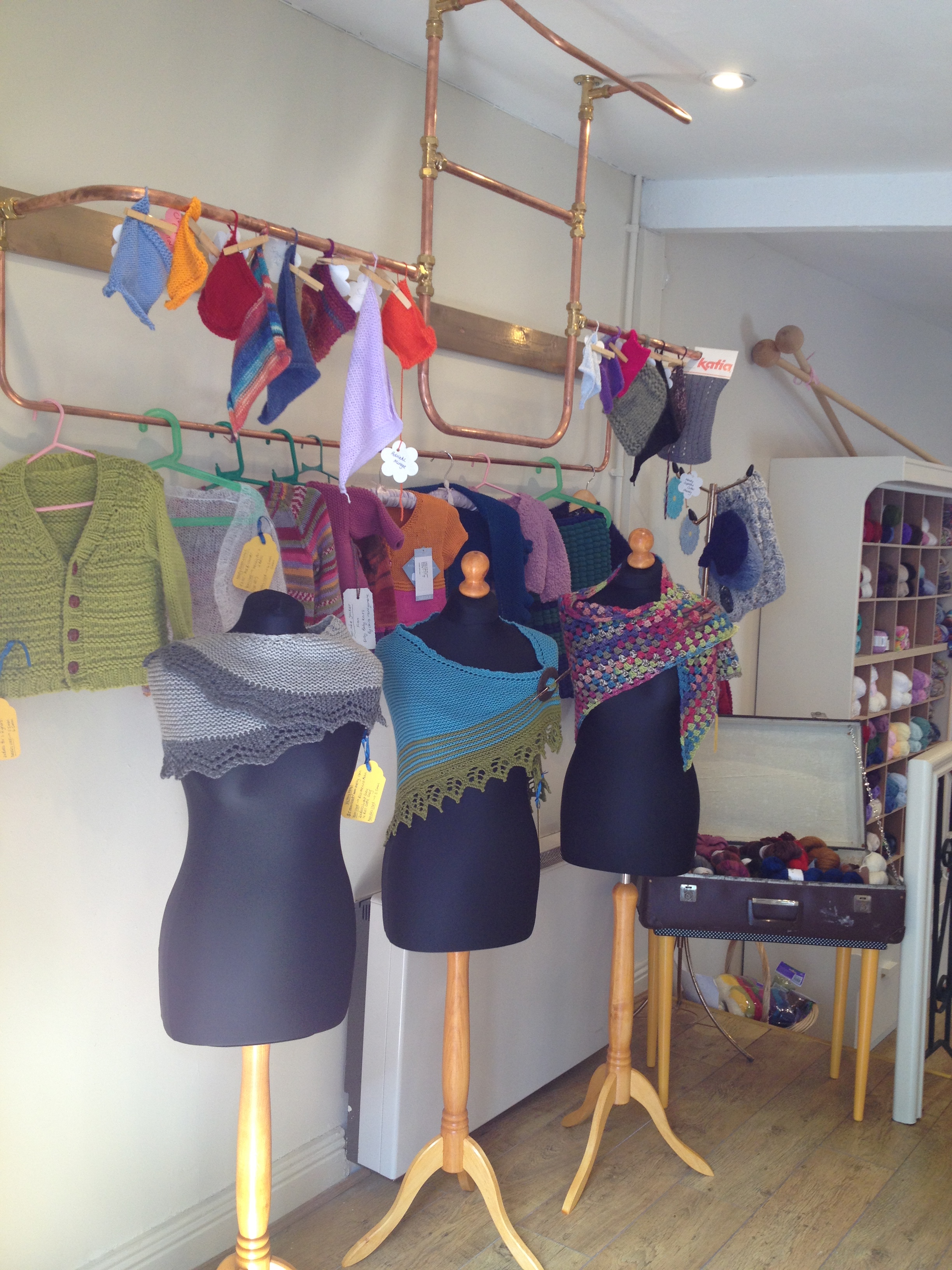 On entering the shop you’ll happen first upon our new knitwear display area. My super talented hubby has gone bonkers with copper pipe (he’s a plumber) and made me this beautiful display rack, which compliments the mannequins perfectly.