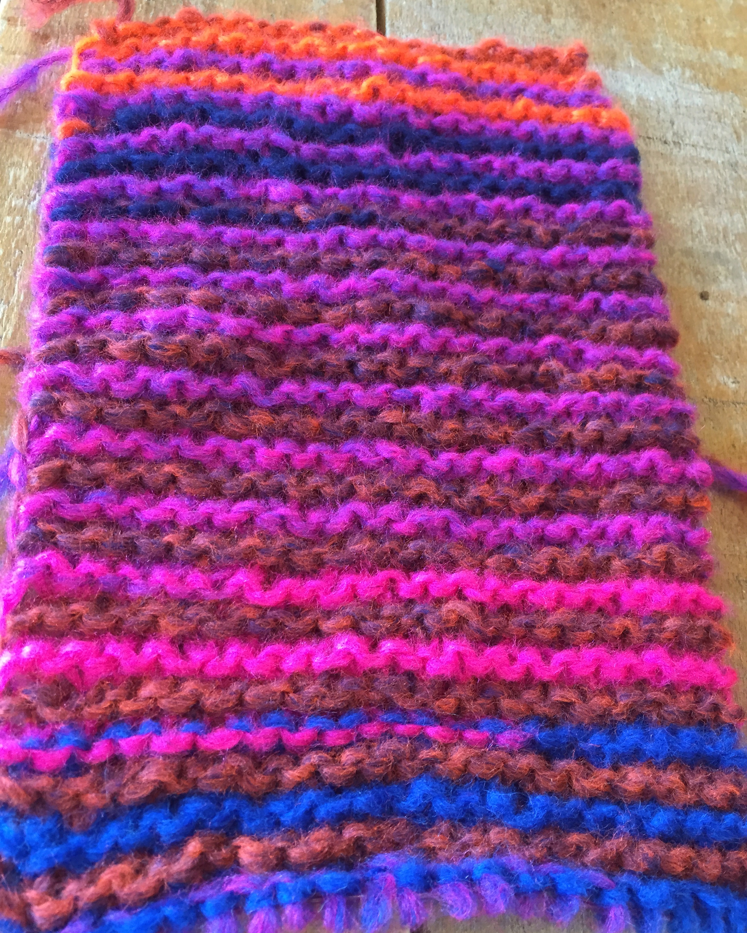 I was a little unsure if I liked the way the colours were knitting up together and even thought about ripping it back, but after a little more knitting, the colours won me over. More importantly, Dina loves it and she seems to be able to wear almost any colour. She tells me it’s extremely warm too, even better – as she’s always cold.