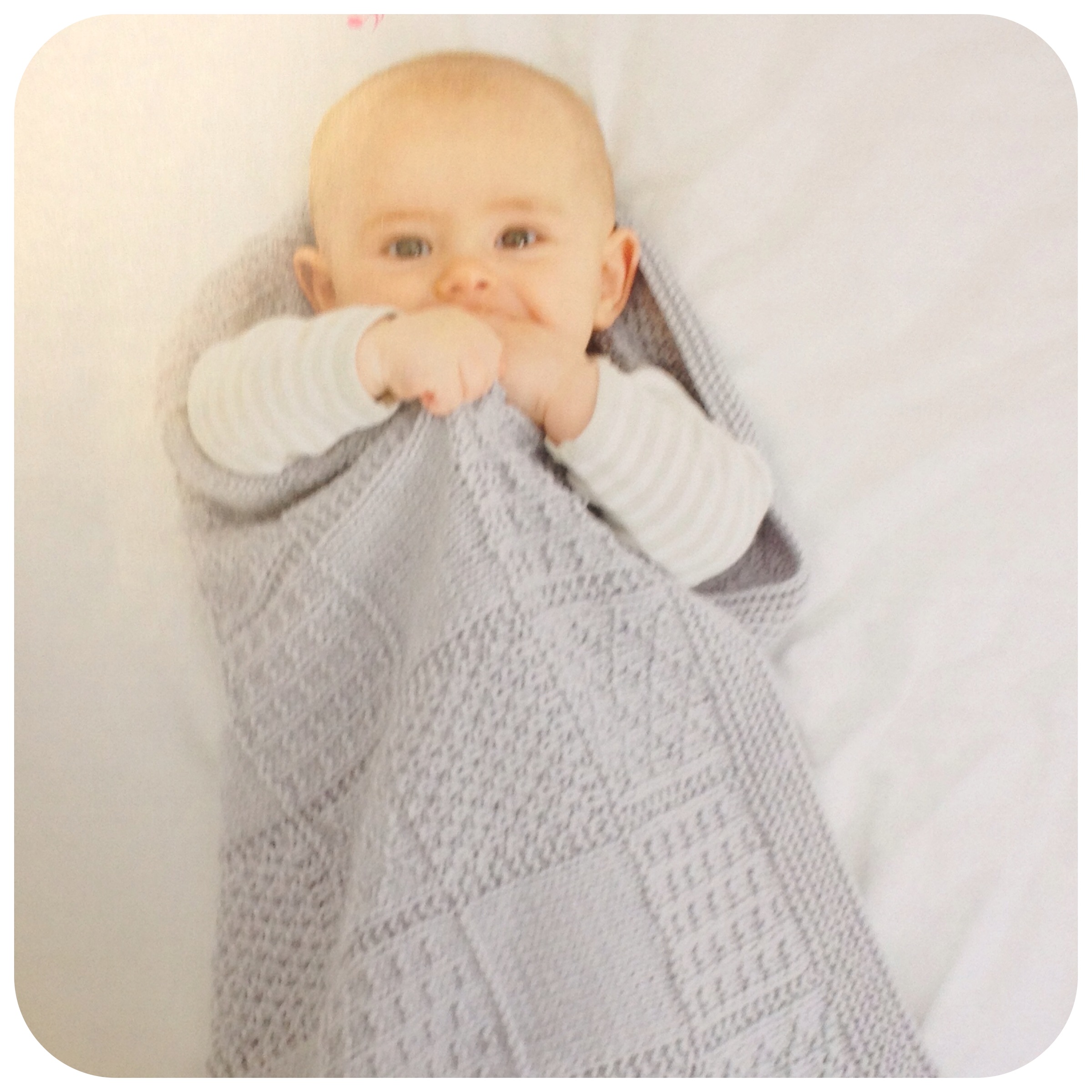 Anyway, back to Vibe. ‘Lullaby Knits’ is the latest book of designs to be released by Vibe, published by Collins & Brown. The book has the same vintage feel as Vibe’s previous book ‘Labour of Love’ that I cooed over for some time. This time, however, the designs are all for babies, with the largest size for 18 – 24 months. The exception is a beautiful lace wrap for mum.
