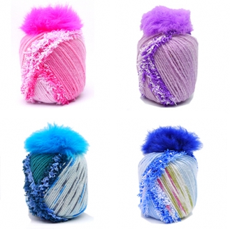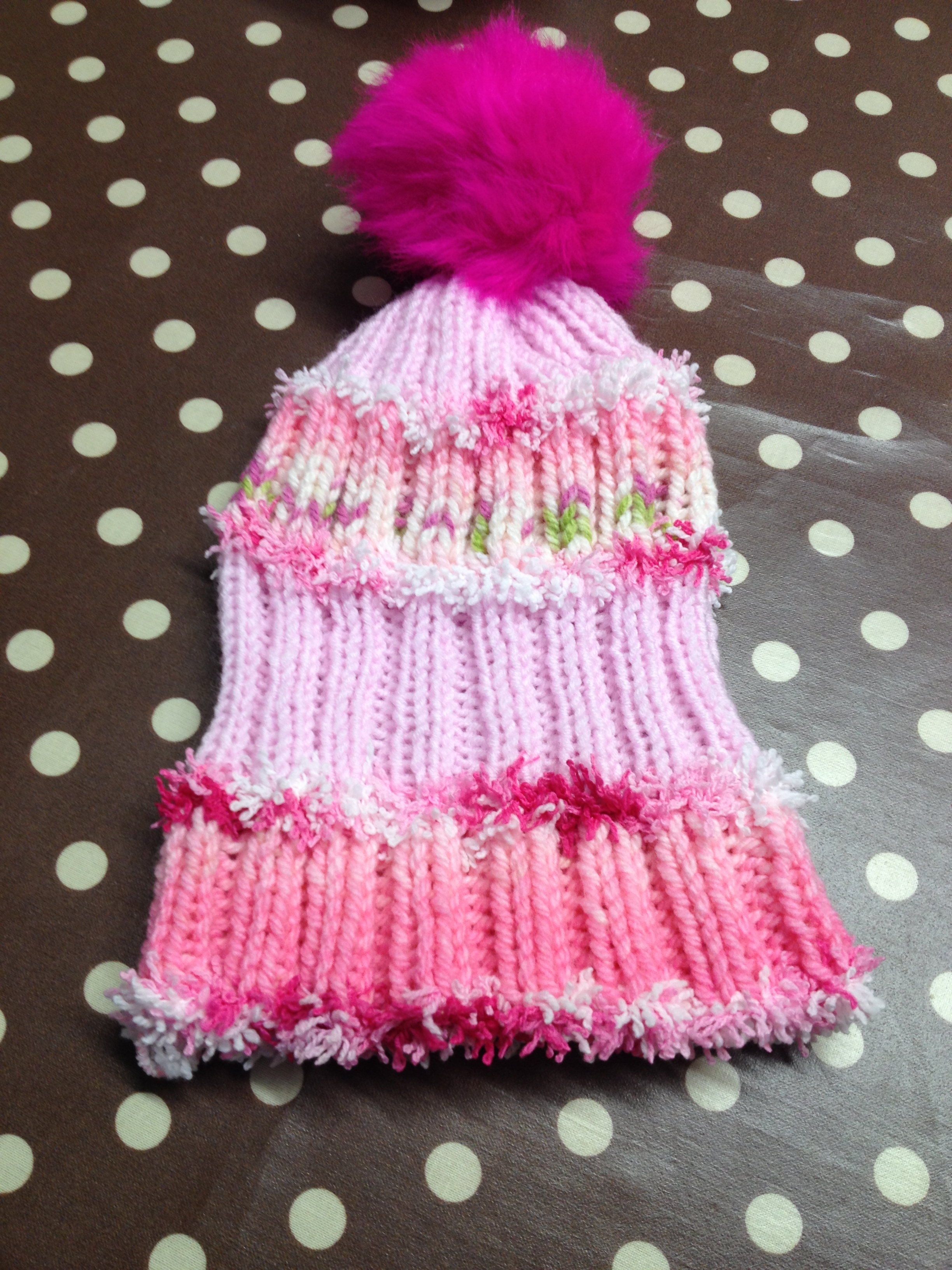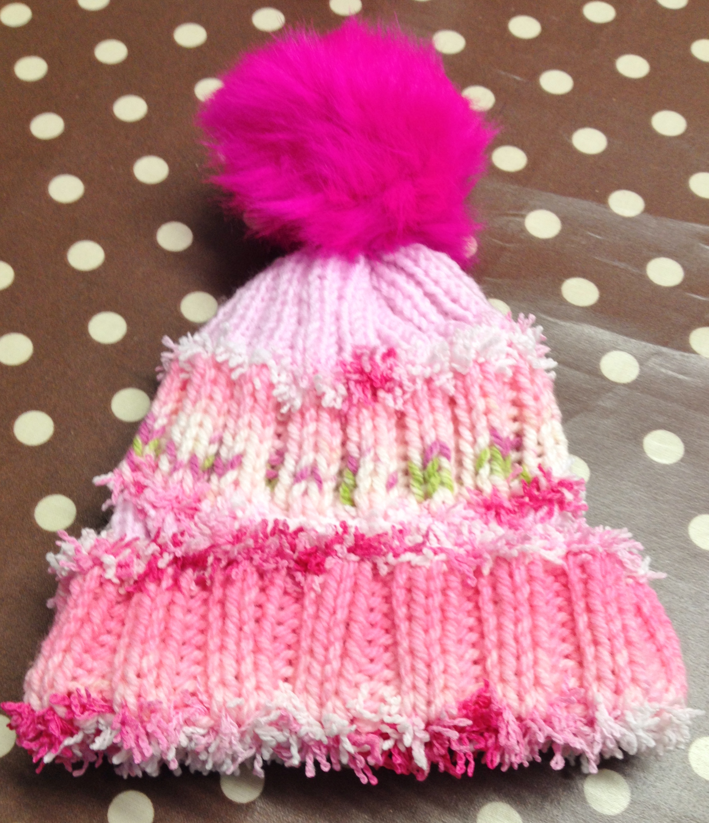 Hatti is aimed at kids although the knitted hat fits me. Each ball comes with a free knit and crochet pattern on the ball band and one ball makes one hat complete with colour coordinating pompom for the top!