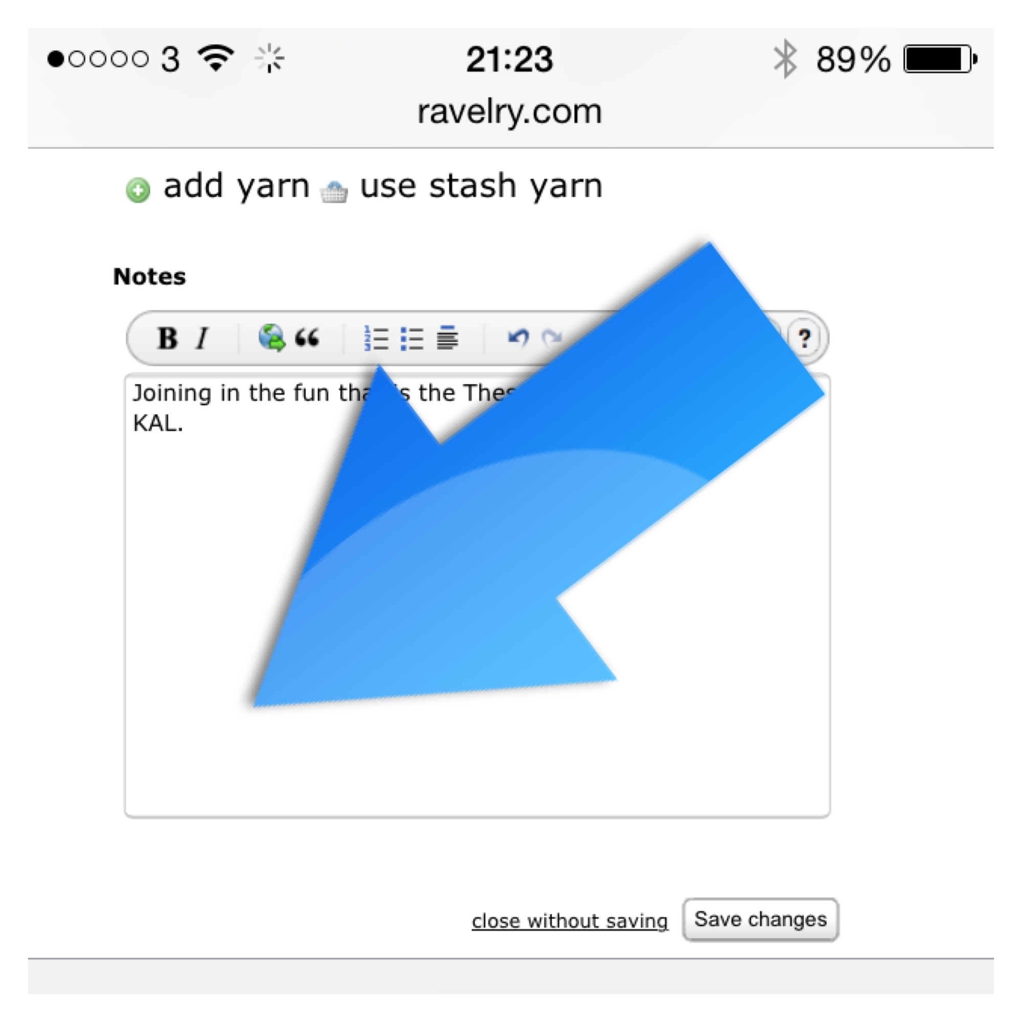 The notes section is used by people in different ways. Some people might note whether they had to change their needle size or made modifications. Others like to record for who and why they’re making the project. There are also fibre people that record any issues they might have come across whilst working on the project, in order to highlight things to watch for others attempting the design. These notes, like most thinks on Ravelry are there to help you and the other members, in fact when you look at other people’s projects you’ll notice there’s a tab underneath for you to check if you found the notes useful.