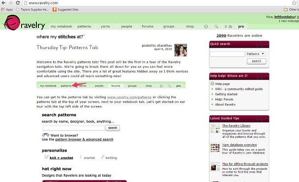 To begin – Click on the my notebook tab on the top left hand side of the Ravelry home page to open up the different tabs.